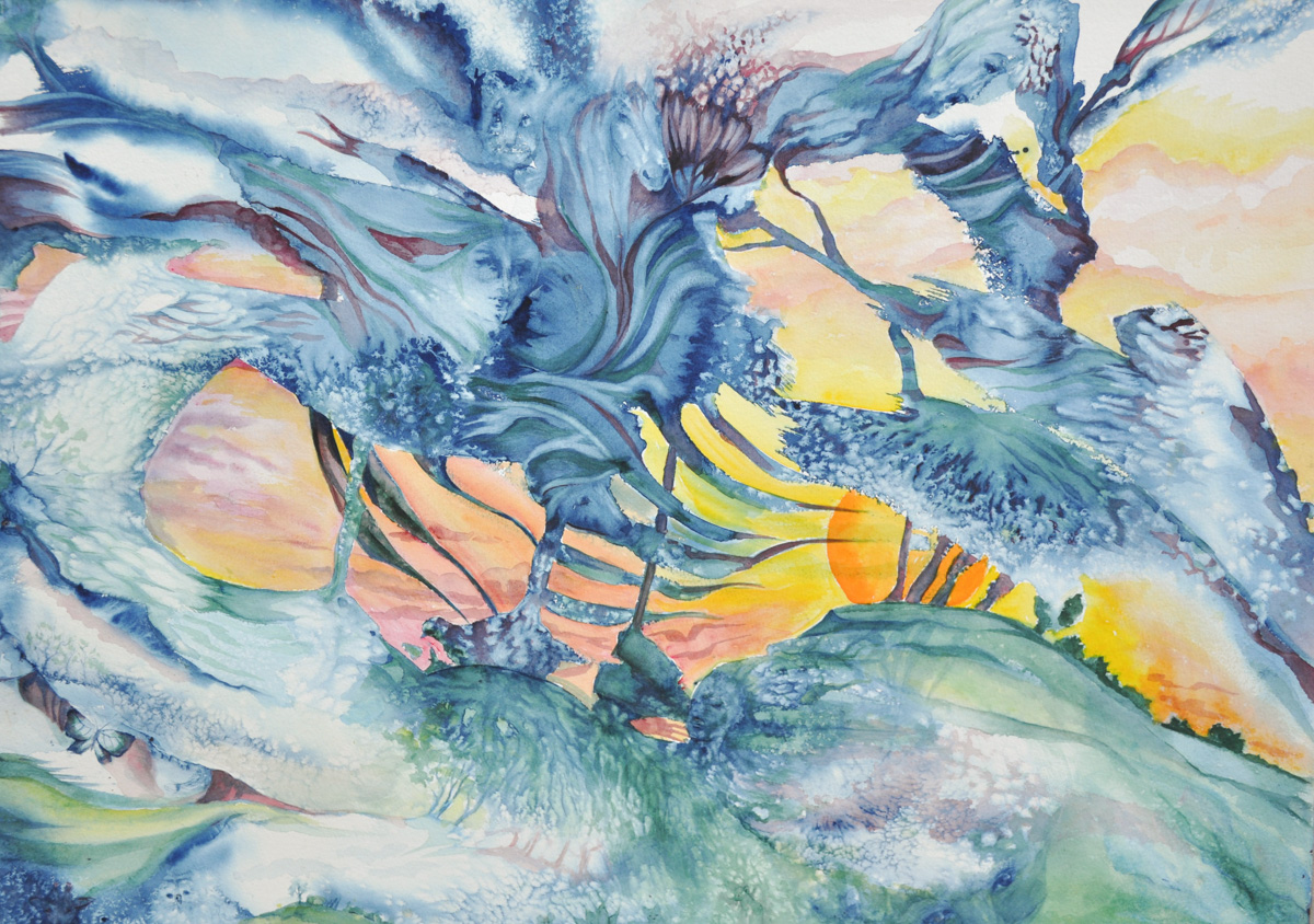 Previous Image Next Image Lowe 2025 THE WAVE MARY LOWE Mary Lowe – Wave – Watercolour and Brusho – $800
